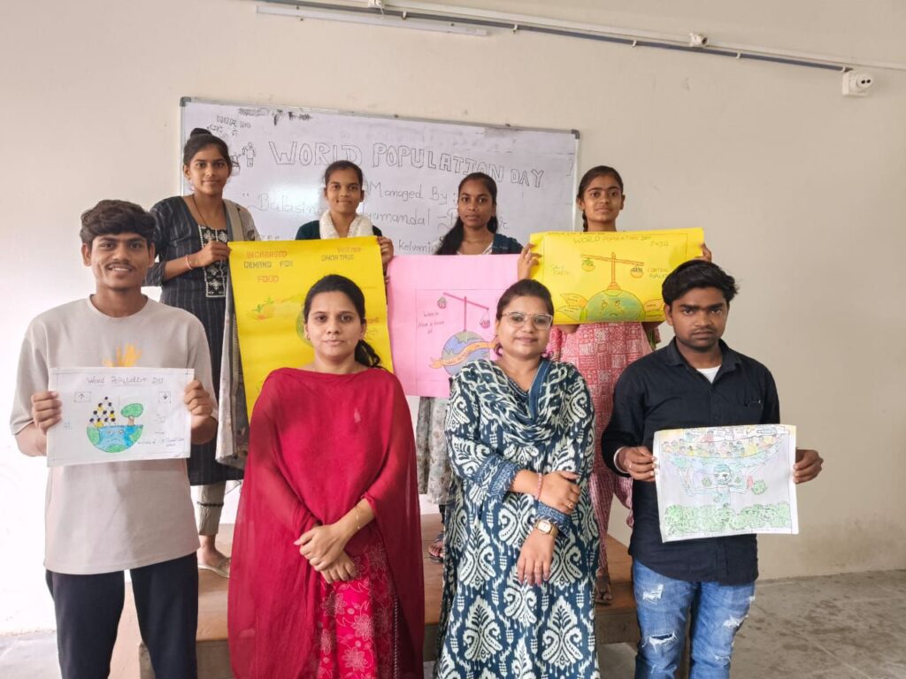 બાલાસિનોર, તા. 20 જુલાઈ 2025: “વસ્તી નિયંત્રણ – સુખી જીવનનો મંત્ર!”ના નારા સાથે વિશ્વ વસ્તી દિવસ નિમિત્તે શ્રી બાલાસિનોર વિદ્યામંડળ સંચાલિત MSW કોલેજ, બાલાસિનોર ખાતે “વસ્તીવધારાની સમસ્યા” વિષય પર એક પ્રેરક પોષ્ટર એક્ઝિબિશનનું આયોજન કરવામાં આવ્યું હતું. આ કાર્યક્રમમાં વિદ્યાર્થીઓએ પોતાની સર્જનાત્મકતા અને વિચારશીલતા દ્વારા વસ્તી નિયંત્રણના મહત્વને રજૂ કરતાં આકર્ષક પોષ્ટરો બનાવ્યાં અને સમાજને જાગૃત કરવા માટે મૂલ્યવાન સૂચનો આપ્યાં.
